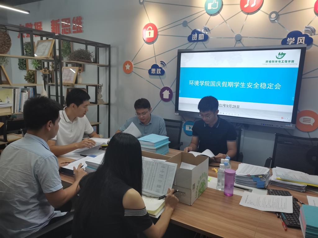 在雁山校区12408会议室召开国庆假期学生安全防范工作布置会。学院党委书记姜子亮、院长曾鸿鹄等党政领导班子,全体辅导员参加本次会议,会议由学院党委副书记郝文佳主持。