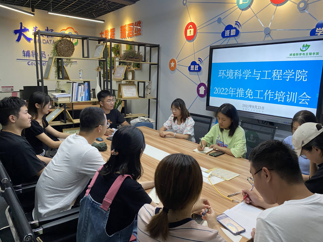 9月23日晚,寸止挑战 在12408大数据工作室召开2022年推荐优秀应届本科毕业生免试攻读硕士学位研究生工作培训会,2018级获得推免资格的同学参加会议,会议由辅导员潘泓序主持。