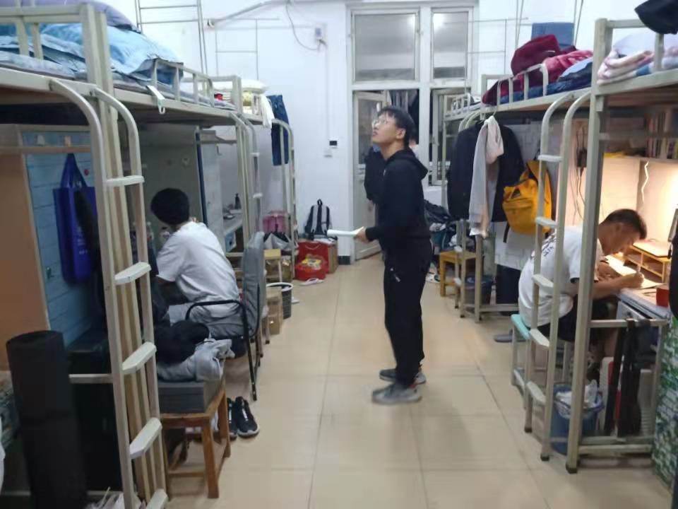 老师和主要学生干部组成宿舍检查小组,深入每一栋宿舍楼进行卫生与安全检查,严格落实宿舍卫生安全情况,保证宿舍内部无安全隐患。检查过程中,同学们态度谦和,文明礼貌,积极配合老师和检查人员的工作。检查结果整体来说符合标准,尤其是墙面、窗户等处,扣分的宿舍较少,大多宿舍的这些地方都比较干净,且并未发现违禁物品。一些宿舍能够保持良好的宿舍卫生,桌面床铺地面都非常整洁,而且还进行了适当的宿舍装饰,十分温馨。但与此同时,仍发现个别宿舍存在卫生死角,物品摆放不够整齐,电路电线随意拉练等安全隐患问题,辅导员老师和检查组及时指正并教育,督促其改正问题,改善了宿舍学习生活环境。