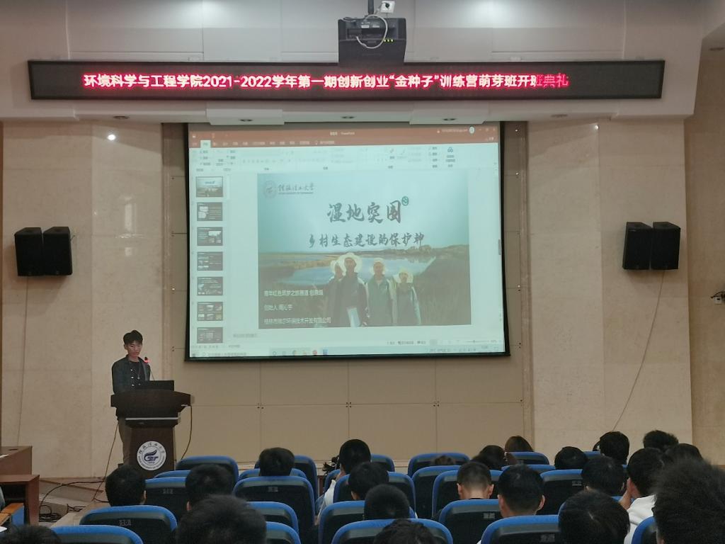 深化创新创业教育改革具有重要意义。接着由周沁宇同学进行创新创业的经验心得分享,他还通过对他们第七届“互联网+”国家级银奖项目——湿地突围-乡村生态建设的保护神的开展过程进行分享,让同学们更加了解了开展一项创新创业项目的详细过程,以及所需要具备的能力和所面对的挑战。