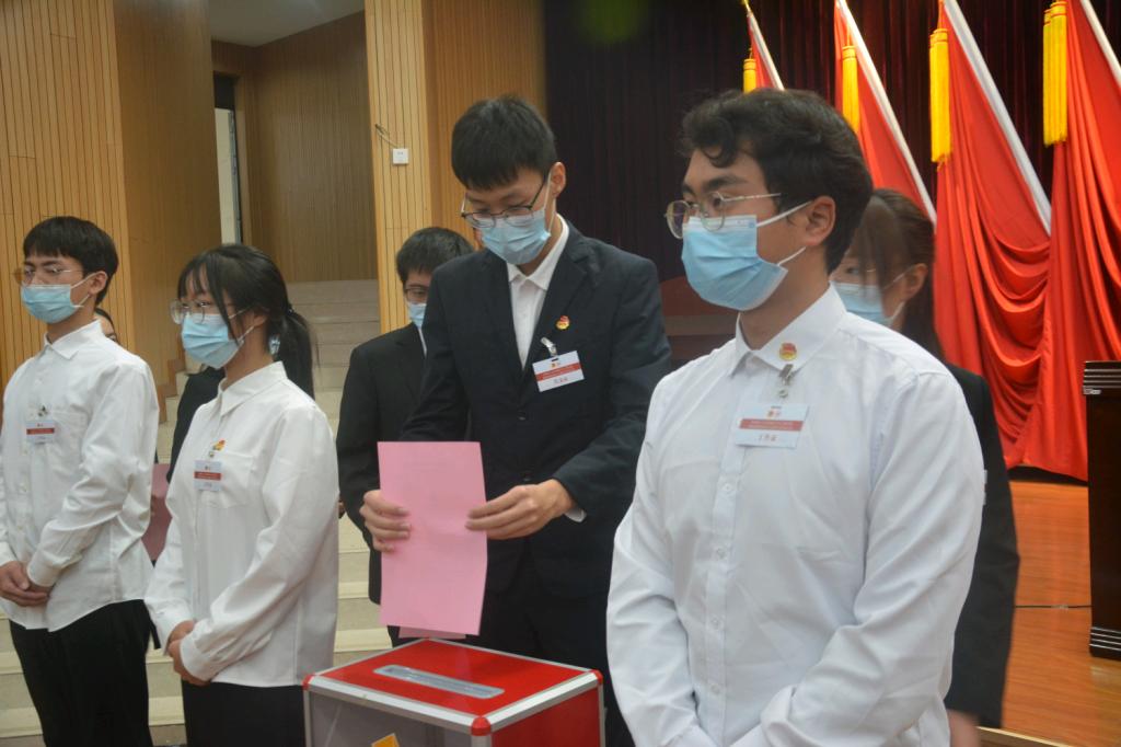 学生会章程(修正案草案)》、审议通过大会选举办法、审议通过监票人、计票人名单。随后,由主持人向大会介绍第四届委员会委员候选人、学生会主席团候选人简介,选举产生第四届委员会委员、第四届学生会主席团成员。经计票人计票,监票人监票,差额选举共青团寸止挑战