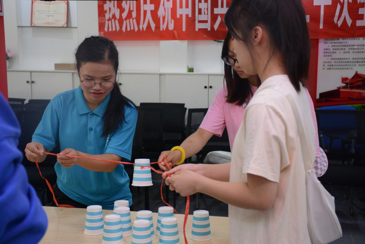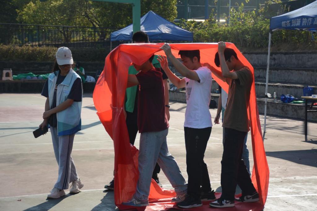秋天的清晨,清新微凉,迎着曙光,趣味运动会在篮球场拉开了序幕。心理和社区专项工作负责老师全程参与本次活动,并温馨提醒在场的工作人员以及参赛队员进行游戏比赛时注意安全。在讲解员的解说下,各参赛队伍认真投入到活动中去,整个现场活动有序进行。投篮、夹气球、风火轮、六人七足……同学们在各个活动中争分夺秒,互相配合,努力让本队拿到最好成绩。掌声、欢呼声、加油声充斥着球场,年轻的生命闪耀着青春的光芒,身心在此刻得到滋养。伴随着午后的燥热,下午两点,室内游戏活动在明园一站式学生社区准时进行。计时员一声令下,参赛队伍迫不及待扔出手中的套圈,力求游戏尽早通关。套圈、你画我猜、叠纸杯、翻纸牌……生动有趣的游戏让现场欢声笑语不断,在合作完成游戏的过程中既加深了同学间的感情,又愉悦身心。