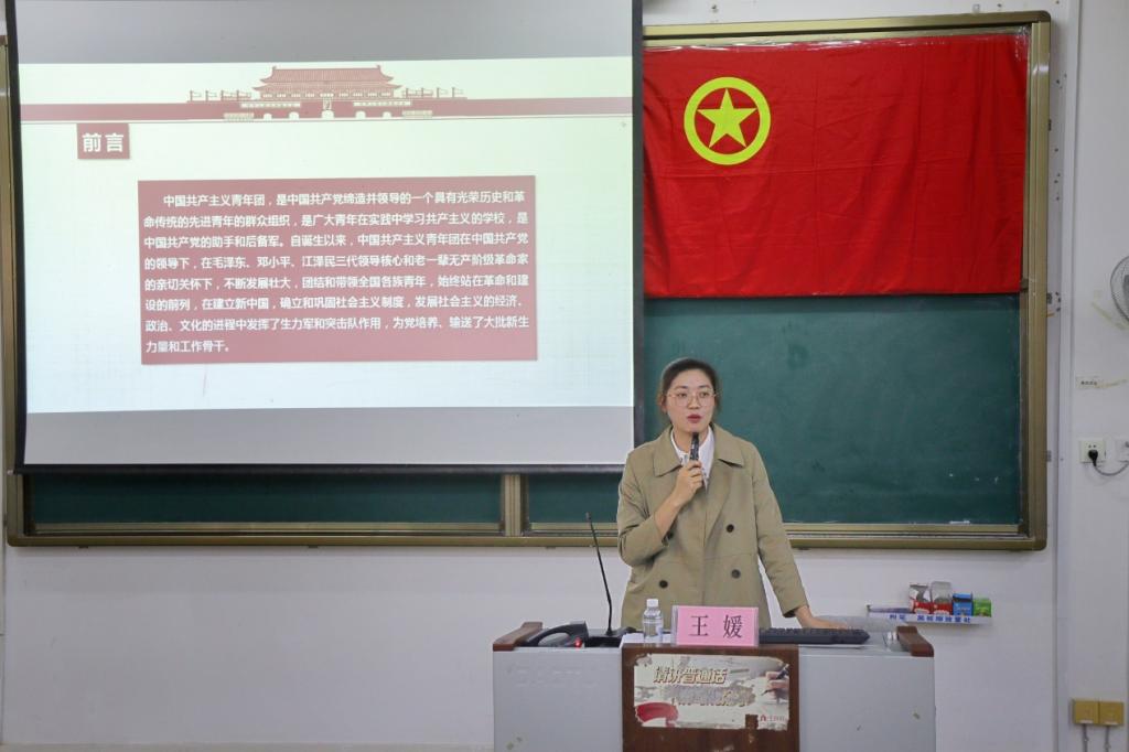 在培训班第二讲中,王媛老师紧紧围绕共青团的三个发展时期,对团的两个重要历史事件以及团的十七次会议进行了详细的讲解,充分围绕团员与学生身份,向同学们展示了共青团的伟大诞生和光辉历程。最后老师留下“共青团走过了一条什么样的光荣道路?”和“共青团的优良传统是什么?我们应该如何继承和发扬?”两个问题给同学们课后思考。