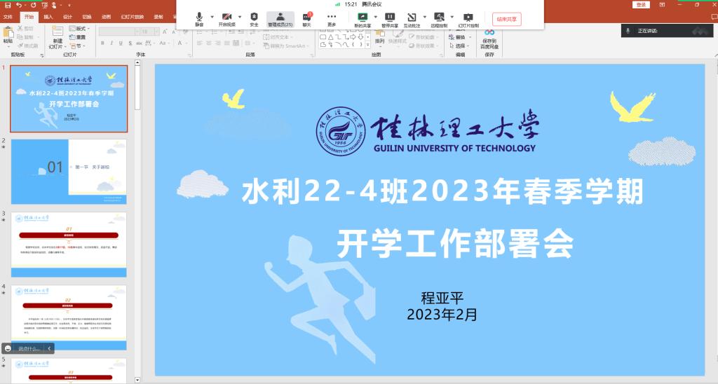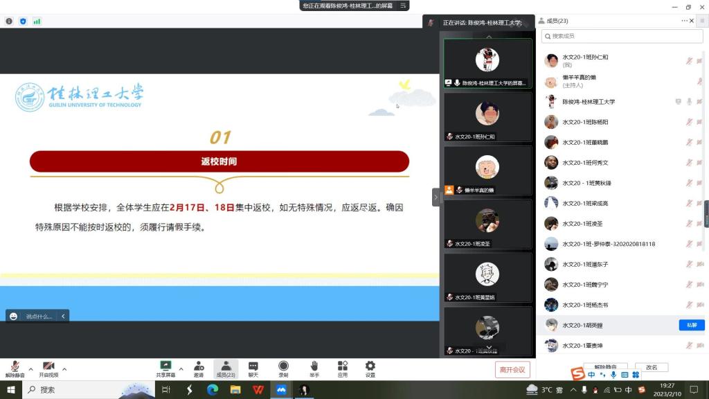 千名学子共上2023年春季学期开学前第一节班会课。班会由各班班主任主持召开,年级辅导员以及全体学生参加。