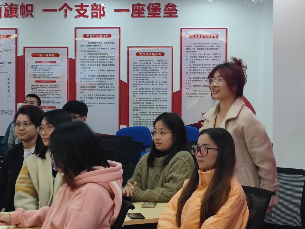 广大青年学生坚定理想信念,坚定不移听党话、跟党走,切实把思想和行动统一到党的二十大精神上来,争做有理想、敢担当、能吃苦、肯奋斗的新时代好青年。2023年2月24日上午,学院学工办唐源江老师在“明园”一站式学生社区思政大讲堂,以“青春践行二十大”为主题进行了学院示范主题班会。学院党委书记姜子亮、副书记郝文佳及全体辅导员、班主任代表出席示范主题班会。