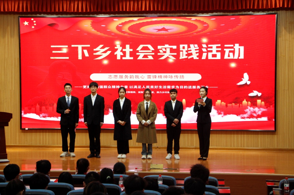 分享会上,赵俊杰、郑晶贝、潘思诗和孙仁和同学分别上台进行“三下乡”社会实践分享。潘思诗同学表示:“黄文秀将自己的激情与青春全部铸入百坭村的脱贫攻坚战中。她用双脚走遍每一家每一户,深切的关怀每一位村民她放弃在大城市里过着舒适摩登生活的机会,她回到家乡去,去到国家需要的地方,去到能实现人生价值理想的地方。黄文秀这般勇于担当,甘于奉献的精神,值得我们每一个新时代青年的学习。”郑晶贝同学说:“通过此次活动,我明白了志愿活动的意义不仅是为了服务社会、服务人民、更是提高自己能力的一个机会。通过志愿活动,我们丰富自己, 帮助他人,同时推动了我国志愿事业的发展,宣扬了雷锋文化,成为了他人进行志愿服务活动的动力,同时也推动了我国志愿服务事业持续发展。”赵俊杰、孙仁和同学就自已在实践中的收获也进行了相关经验分享并鼓励同学们积极参与到社会实践活动当中。接着,四位实践团代表上台为同学们解答有关三下乡社会实践的疑惑,为同学们指明了大学生社会实践的方向。