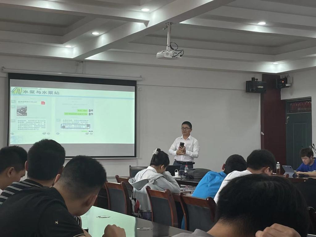 赵文玉老师以参加某泵站工程案例作为切入点,为同学们仔细讲解水泵选型的相关知识点,并运用专业知识分析水泵在试运行过程中出现的问题,提出解决问题的方案,给同学们展示了解决此类问题的实际操作过程,加深了同学们对离心泵运行问题的认知和理解。此外,赵文玉老师勉励同学们在求学治学的过程中要善于质疑、勇于创新,为中华民族的复兴、中国科技强国梦的实现贡献出桂工环境学子的一份力量。