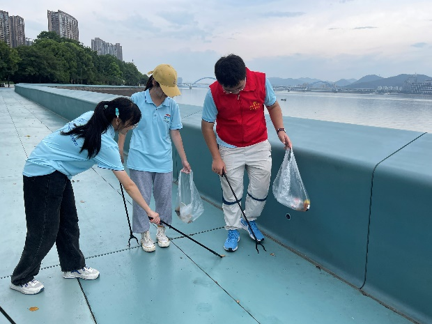 7月9日,寸止挑战 "碧水杭城韵,生态长征行"社会实践团在钱塘江旁开展了钱塘江生态宣讲、参与钱塘江巡视、进行钱塘江健康测评、分发相关调查问卷等多项活动。