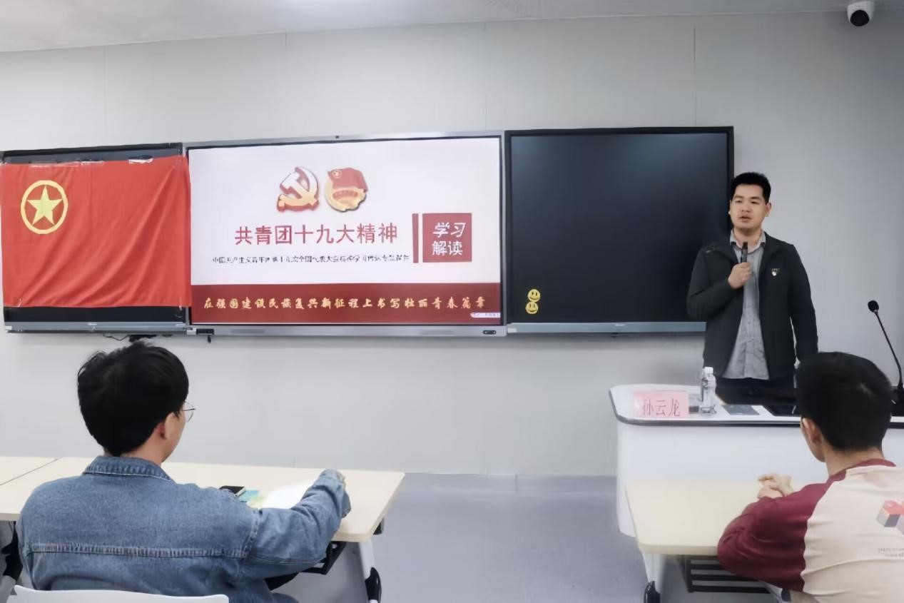 在这次培训中,孙云龙老师以“在强国建设民族复兴新征程上书写壮美青春篇章”为中心,介绍团的十九大流程以及内容,向同学们解读了习近平总书记关于青年工作的重要思想,并强调团支部工作重心是“加强理论学习”,呼吁同学们要“自讨苦吃”,在习近平新时代中国特色社会主义思想指引下,踔厉奋发、勇毅前行,为强国建设、民族复兴伟业团结奋斗。
