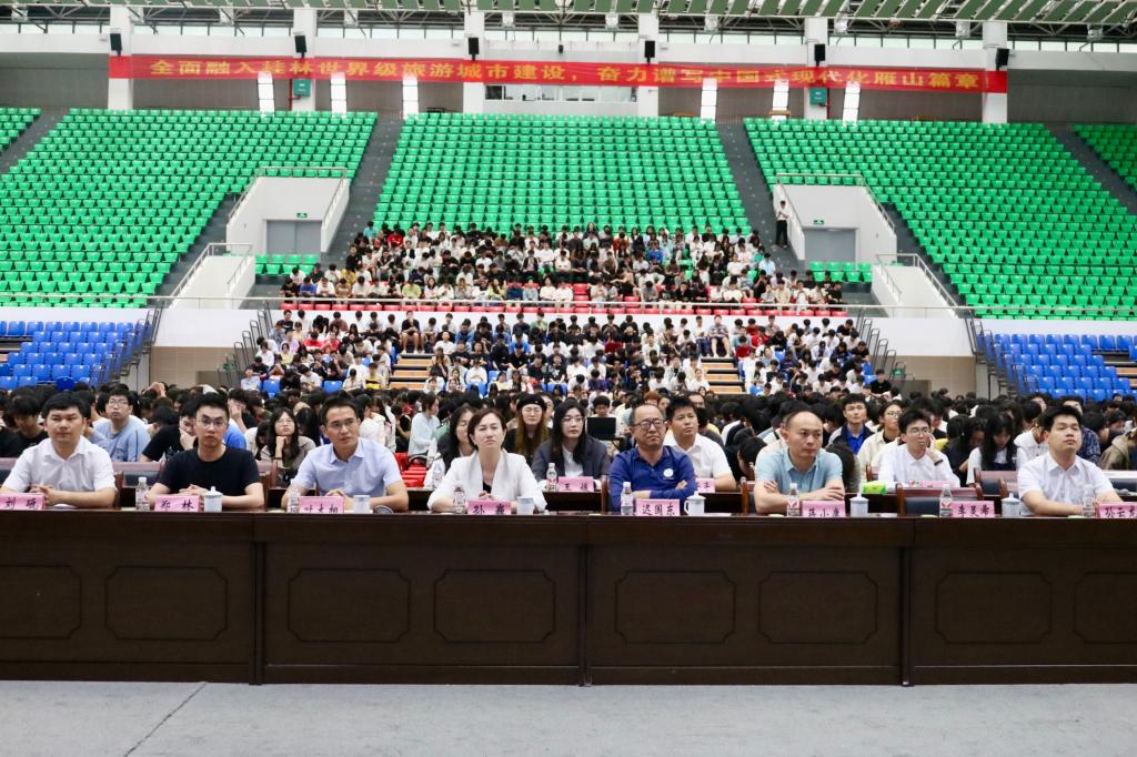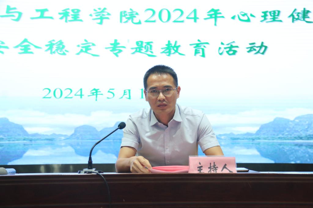 邀请桂林医学院附属医院主任护师、国家二级心理咨询师苏元英和雁山反诈中心、雁山派出所负责人李灵希在雁山校区综合体育训练馆开展“沁润文明心灵,筑牢安全防线”——2024年心理健康暨安全稳定专题教育活动。学生工作部(处)副部(处)长、大学生就业与职业规划中心主任迟国东,研究生工作部部长孙巍,学院党委副书记叶大相,武装部、保卫处蒋小康、郑林出席活动,学院全体专兼职辅导员及全体研究生、本科生共计2000余人参加,活动由叶大相主持。