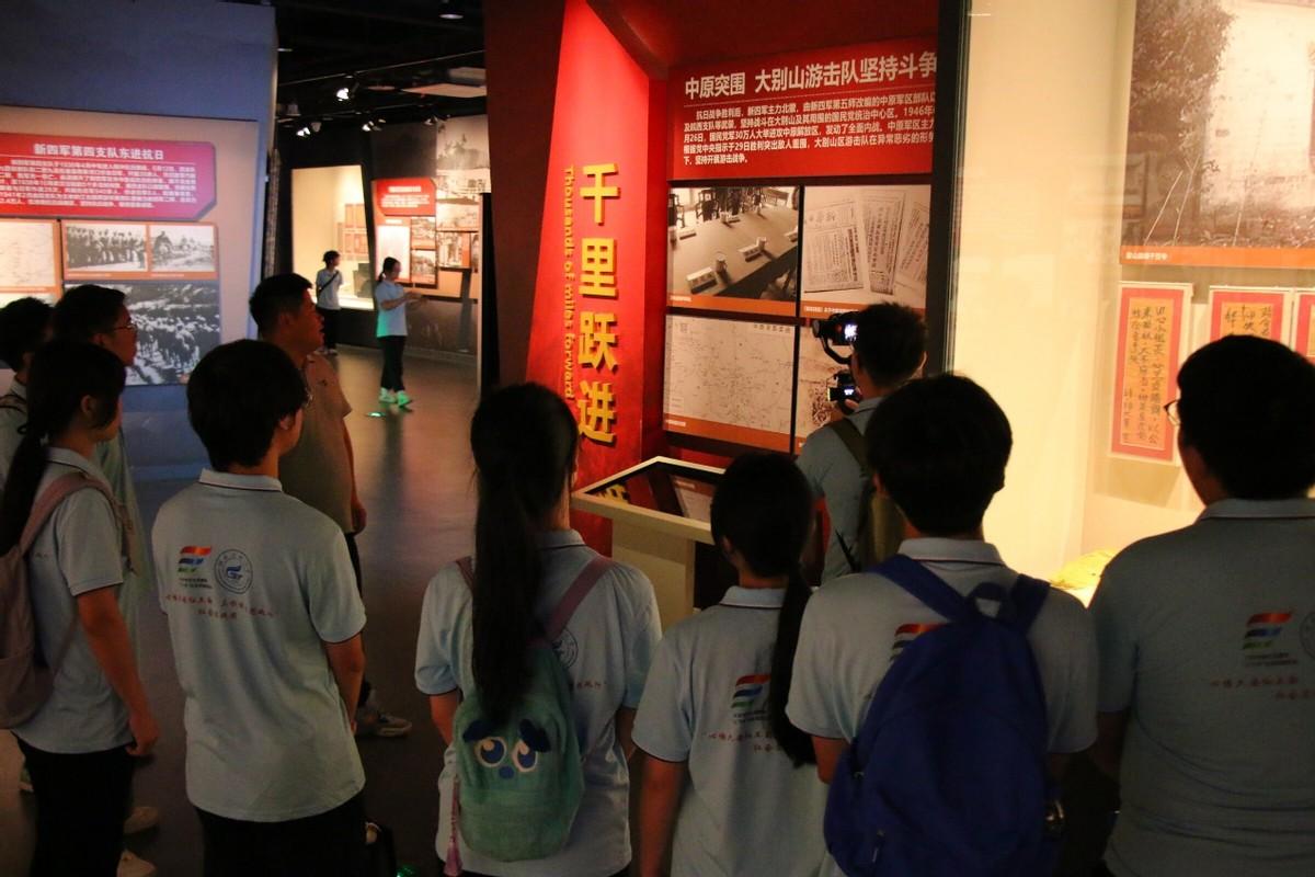 图为社会实践团成员在大别山革命历史纪念馆聆听讲解员讲解现场