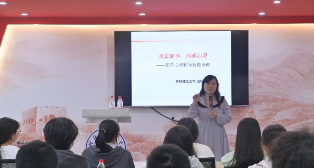 的心理学副教授谭咏梅老师,来分享她对于朋辈心理辅导技能的心得与经验。谭咏梅老师借助大量的实例分析,形象生动地阐释了朋辈辅导的定义、基本态度以及基本技能。在培训会过程中,同学们踊跃回答老师提出的问题,现场氛围轻松幽默,和谐愉悦。此次培训会让心理委员对朋辈心理辅导技能有了更为深刻的认识。