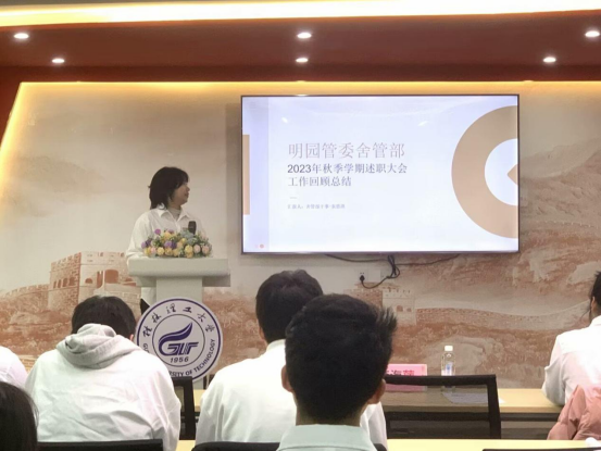 明园学生社区管理委员会(简称“明园管委”)在思政大讲堂成功举行了2023年秋季学期述职大会,对过去一学期的工作进行了全面回顾与总结。