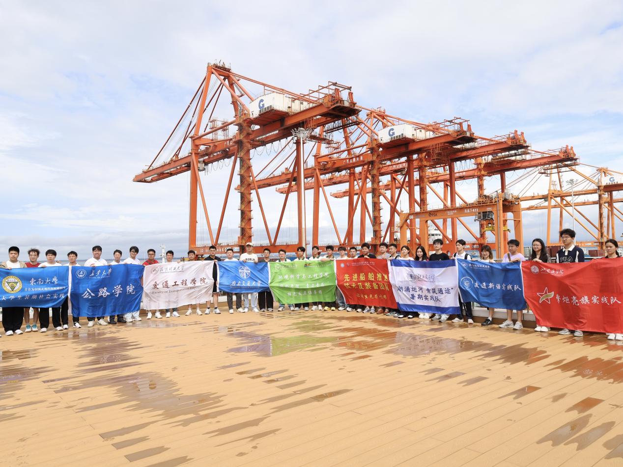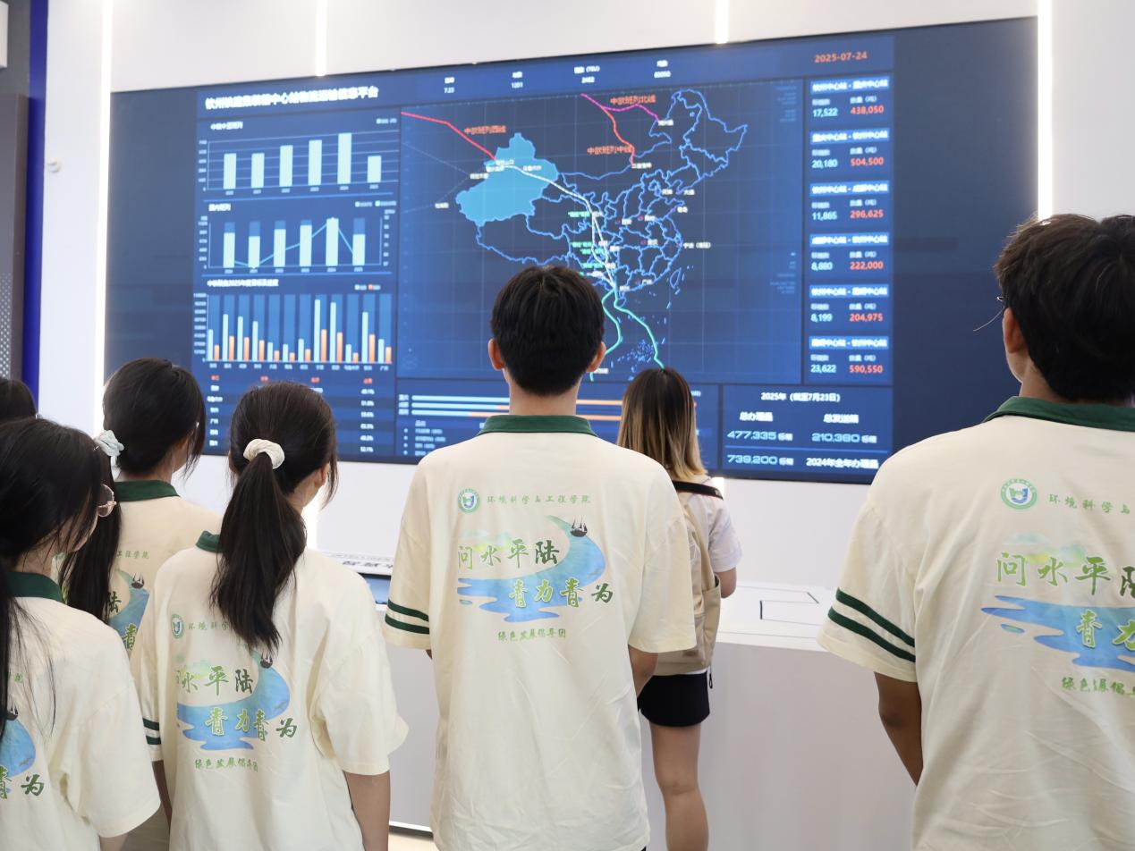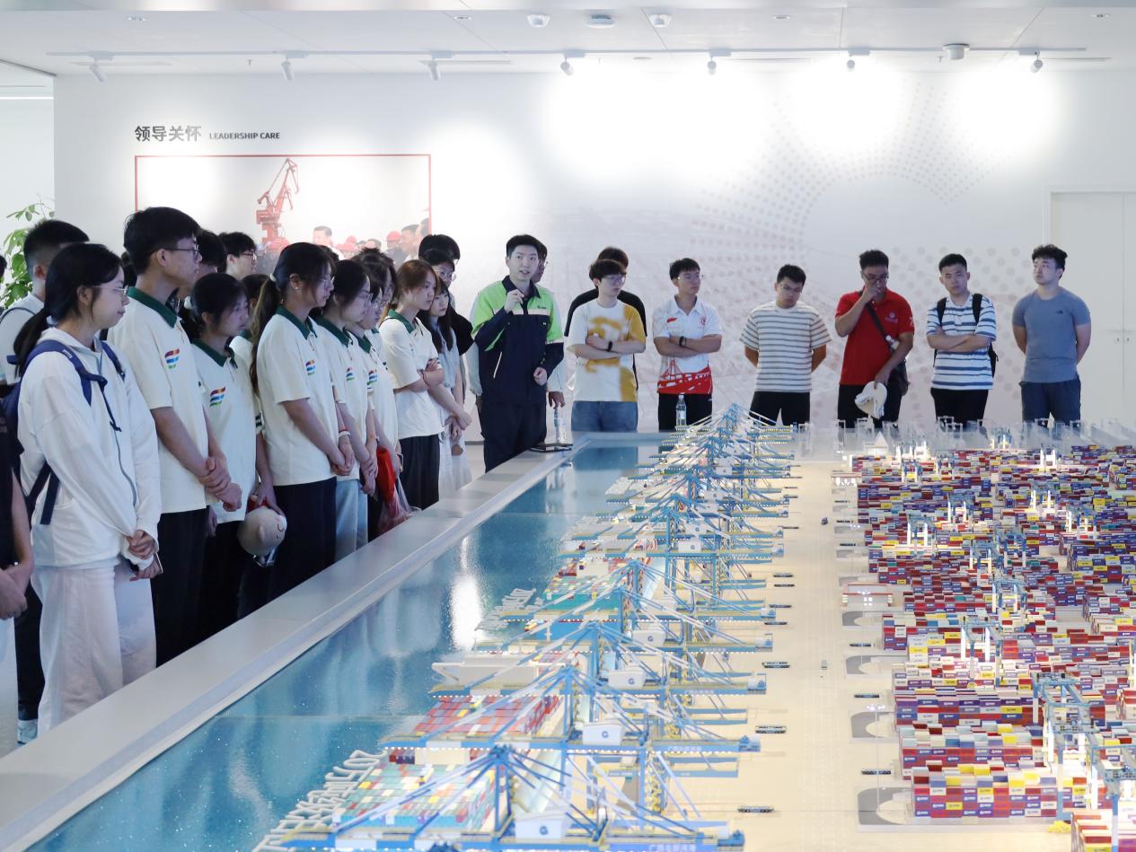 “问水平陆,青力青为”实践团与东南大学、长安大学等八所高校实践团齐聚广西钦州,共同走进钦州自动化集装箱码头及西部陆海新通道钦州中心站展厅,深入探寻北部湾港在自动化升级与国家战略通道建设中的创新实践,感受“中国智慧”赋能港口发展的强劲动能。