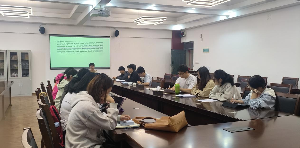 在雁山校区萃华楼12407教室举办研究生英语六级技巧分享会。环境科学与工程专业2024级硕士研究生曾钏江同学担任主讲人,近40名研究生参与。