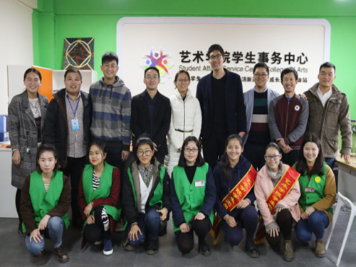 党委副书记郝文佳、团委副书记唐红兵携各年级辅导员前往艺术学院学习交流,艺术学院党委书记张成龙、党委副书记万千,团委副书记王威及各年级辅导员接待,于雁山校区博雅楼艺术馆进行了交流会。