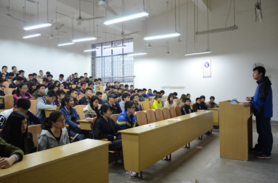 在雁山校区04323教室顺利召开本学期首次全院宿舍长例会,辅导员田明浩、贺旭霞出席并讲话,学院14、15、16级宿舍长参会。