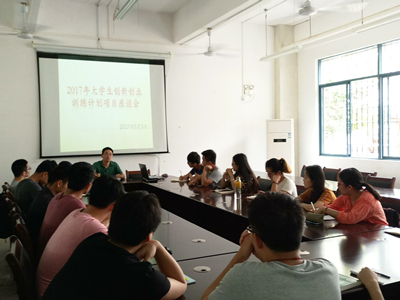 在九栋玻璃房召开了2017年大学生创新创业训练计划项目座谈会,会议由学院团委副书记唐红兵老师主持,寸止挑战