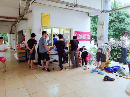通过这个具有学院特色的“以物换物”活动在宿舍区营造了一个集体参与建设绿色校园的良好氛围。