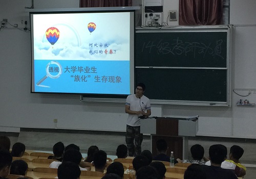 于5月30日晚在雁山校区多媒体教室召开2018届考研动员大会。学院党委副书记郝文佳老师组织并主持此次会议,辅导员宋海民老师出席会议,2014级全体同学到场参加动员大会。
