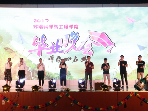 正式晚会于6月17日晚七点半在雁山校区体育馆举行。整场晚会以电影的形式开展,三大部分环环相扣:初到环院的怦然心动、求学之路中的感恩陪伴以及对未来的向往期盼,晚会的三部曲无不浓浓地体现着环院情。