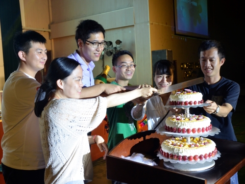 老师们为毕业生切蛋糕