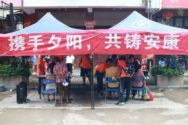 赴六塘镇暑期社会实践团带着血压测量仪,在桂林市临桂区六塘镇的街道旁,支起桌子,挂起横幅,开展了“携手夕阳,共铸安康”义务量血压活动,并根据居民的情况相应给出饮食建议。