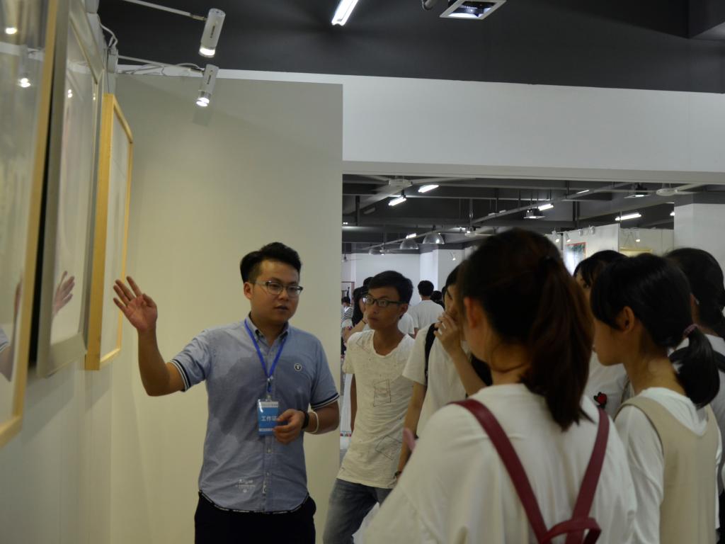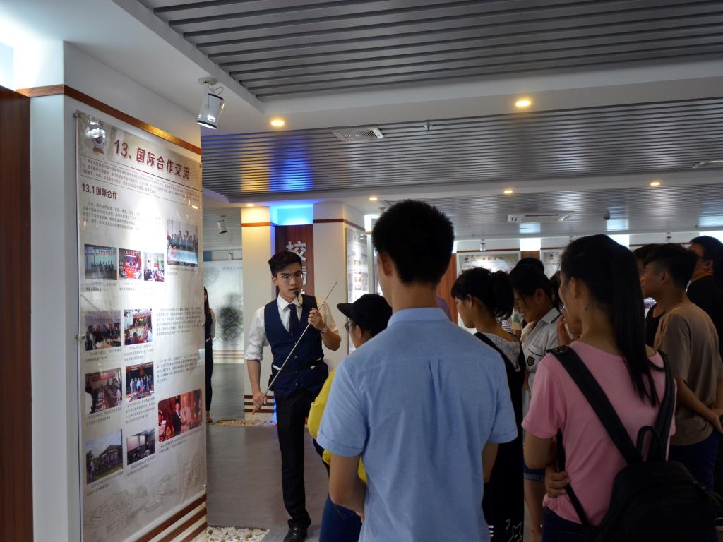 同学们参观完实验室,集合到图书馆参观我校校史馆及艺术馆。在校史馆里,同学们聆听着志愿者的介绍,感受着桂工人的白手起家,艰苦创业,他们勤奋求实,献身开拓,他们凝心聚力,才有了今天桂工的辉煌。而在艺术馆里,笔力遒劲的书法作品、泼墨大气的国画、细腻写实的水彩画,创新意识的服装设计、剪裁精巧的剪纸,一切都充满艺术的气息,充满浪漫的情调,带给人强烈的视觉冲击,让同学们在艺术的氛围中得到熏陶,获得美的体验。