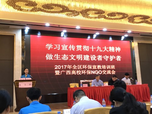 11月3日,由自治区环境保护厅举办的2017年全区环保宣教培训班暨广西高校环保NGO交流会在南宁市举行,我校绿色环保协会参加广西高校环保NGO交流会并代表桂林高校作典型发言,学院团委副书记唐红兵老师携绿色环保协会会长陶燕与院学生会副主席黄舒婷参加会议。
