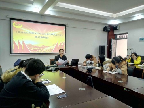 委员会改革实施方案》的座谈会,会议由学院团委副书记唐红兵主持,辅导员夏晴、宋海民、黄兆凡、田明浩、贺旭霞以及各班级班长、团支书参加了此次座谈会。