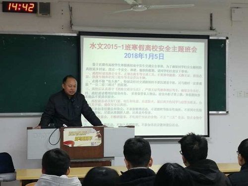 为加强学生寒假离校及假期期间的安全防范意识,学院在领导高度重视,对学生安全稳定和意识形态工作常抓不懈的部署下,召开全体班主任会议进行工作布置。近期,各年级各班级在班主任或辅导员组织安排下陆续召开2018年寒假离校及假期安全教育主题班会。