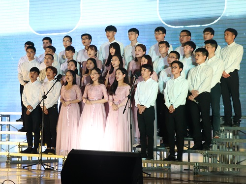 伴随着机控学院乐队的开场表演,比赛就此拉开了帷幕,一首“我爱你中国”燃起全场。本次比赛共分为三个篇章,第一篇章“咏经典,颂国恩”;第二篇章“展风采,跨时代”;第三篇章“赤子梦,筑征程”。三个篇章各具特色,同学们以昂扬的精神风貌,配以诗朗诵、舞蹈等艺术表现形式,用歌声尽情抒发对党对祖国的热爱之情。