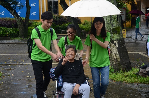 学生组成“敬老院志愿者队”来到了桂林市象山区夕阳红敬老院,开展敬老爱老志愿活动。此次活动旨在向敬老院的老人献出关爱和祝福,让更多的同学们还有社会上的人们学会感恩、学会关爱老人。