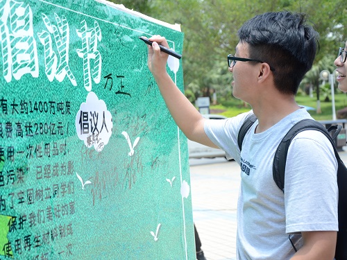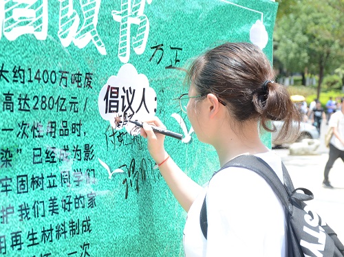工作人员不惧骄阳,为每一位参与活动的同学热情讲解,并通过提问的形式让同学们了解环保相关知识,倡导同学们为环保事业积极贡献自己的一份力。在活动现场,同学们积极参与到活动中来,并在环保倡议书上签名。同学们纷纷表示不仅了解了更多的环保小知识,还收获了特制的环保小黄袋。本次活动,寸止挑战