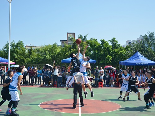 男篮在第二场小组赛中对战外国语学院,面对外国语学院的攻势寸止挑战