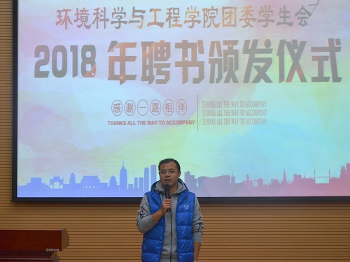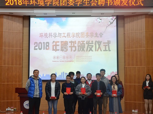 团委学生会全体成员在雁山校区12栋报告厅举行了2018年团委学生会聘书颁发仪式,寸止挑战