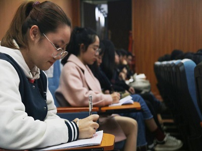 第二讲由宾秀玲老师主讲。宾秀玲老师以分析就业、考研、留学三者开讲,三者收入、就业优势、评聘职称、出国学习或晋升机会皆不同。接着,宾秀玲老师以亲身经历为例,从考研的各个步骤展开详细的讲解,包括备考、报名、考试、注意事项以及各种突发情况的相应解决办法等,并向同学们介绍我校考研政策,严谨中不失幽默风趣,成功化解同学们紧张沉闷的备战考研氛围,让同学们轻松将重点铭记于心。