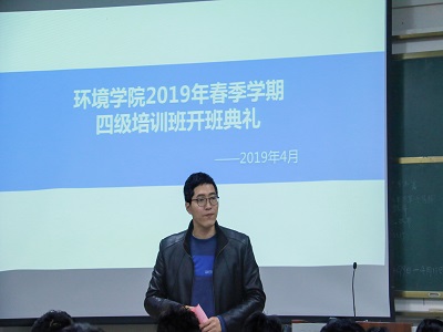 2019年春季学期大学英语四级培训班开班典礼,学院党委郝文佳副书记出席开班典礼。
