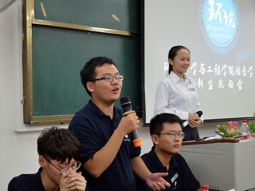 会议接近尾声,开始了同学们自由提问环节,新生们向自己感兴趣的部门提出问题并由该部门部长进行解答。最后,还进行了“看图识人”的小游戏互动,通过角度不同的照片让同学们猜是哪位团委学生会成员。