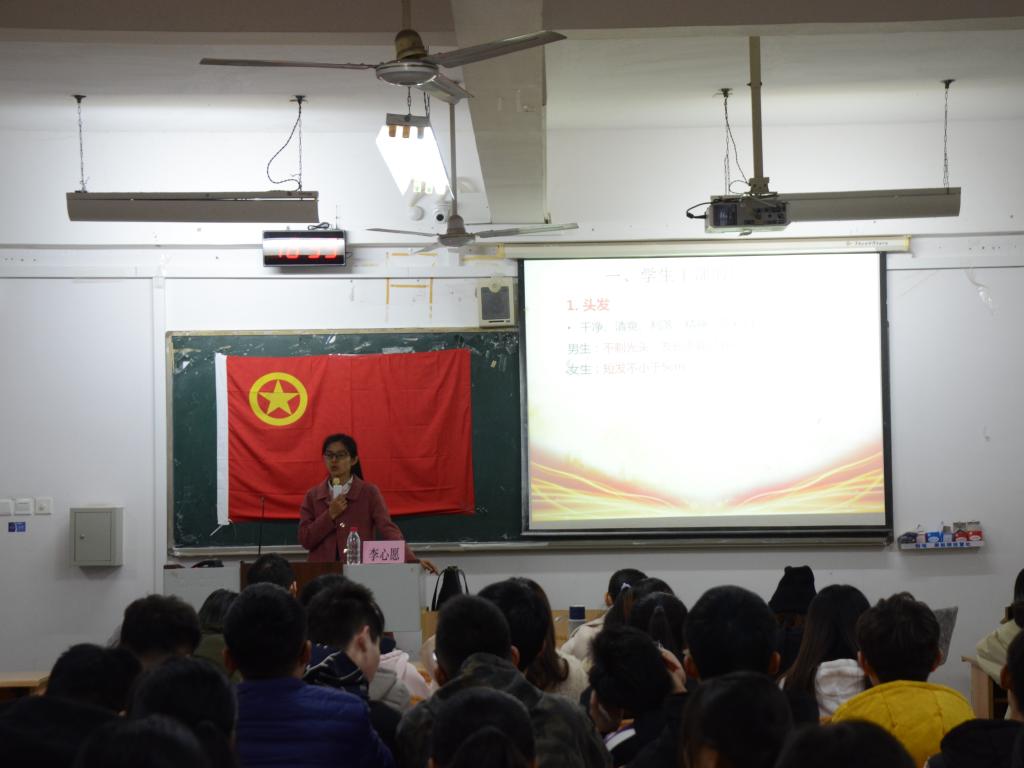 李心愿老师以“文明礼仪”为主题,讲授了学生骨干提升自我综合素养的深刻意义。她从学生干部的仪容仪表、礼仪礼貌、应具备的素质与能力等方面为同学们全方位多角度的讲述了学生干部在工作中应注意的文明礼仪。她认为:学生干部应注意保持头发、面部、手部、着装等方面的整洁卫生,重点注意接打电话或编辑短信的礼仪礼貌以及在人前坐姿要端正。李老师强调学生骨干还应培养自身思想、知识、道德、心理等方面的良好素质,应从一点一滴的细节中提高自己的沟通、协作、执行和领导能力。李老师还结合亲身经历,分享自己的工作经验和方法。