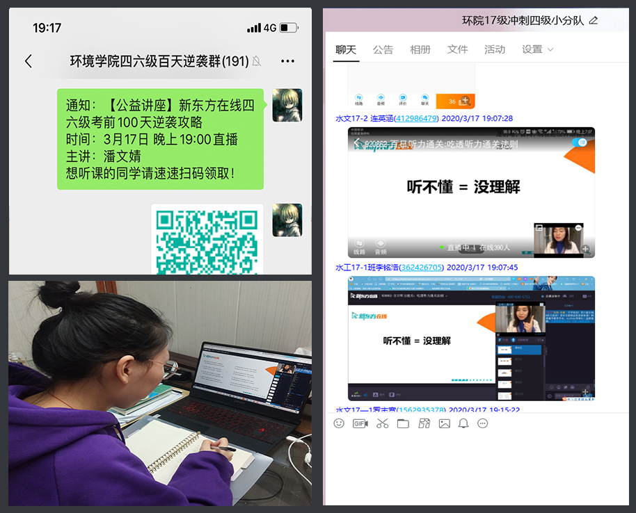 于2020年3月17日19:00进行线上英语四六级活动,为进一步加强和提高学生备考大学英语四六级的能力。本次活动由校外指导老师潘文婧主讲,寸止挑战