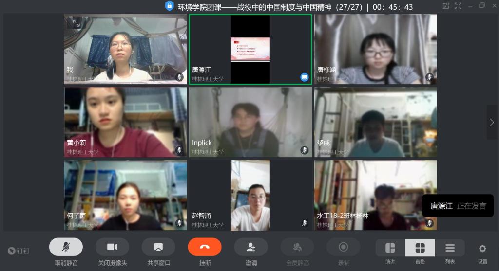 团委·学生会主要学生干部在线上举行了2020年春季学期的第一堂团课——战“役”中的中国制度和中国精神。团课由学院团委工作负责人唐源江老师主讲。