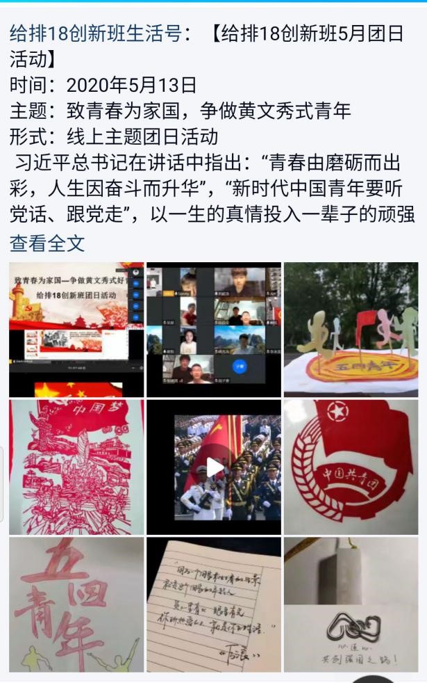 5月9日-5月16日期间组织开展了“致青春,为家国”—争做黄文秀式好青年主题团日活动。为切实开展好本次团日活动,许多团支部采用钉钉线上与QQ群聊的形式开展团日活动,也有部分团支部采取线下开展团日活动的形式,积极学习黄文秀书记相关事迹与精神。