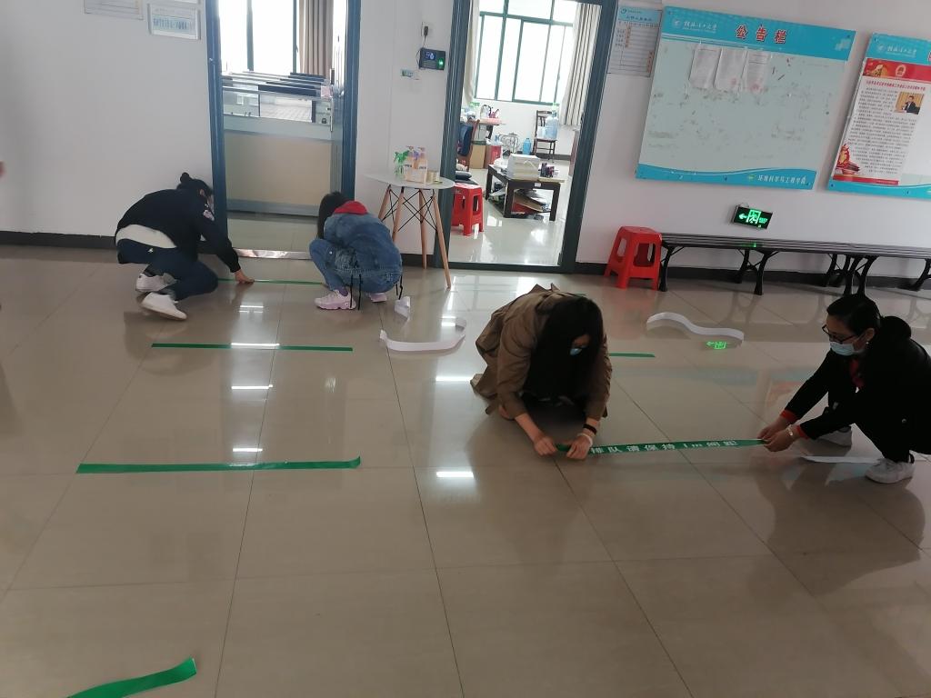 根据学校疫情防控工作部署和要求,为进一步做好学生返校后的教学工作,寸止挑战 两办于4月20日上午在12栋萃华楼的4楼,按照分区域、保持1米距离、分设出入口等要求,进行测温线路设计,拉起警戒线,增设地面引导标识和出入口标识,并准备了免洗消毒液和一次性口罩等防疫用品。为学院师生营造安全的学习和工作环境。