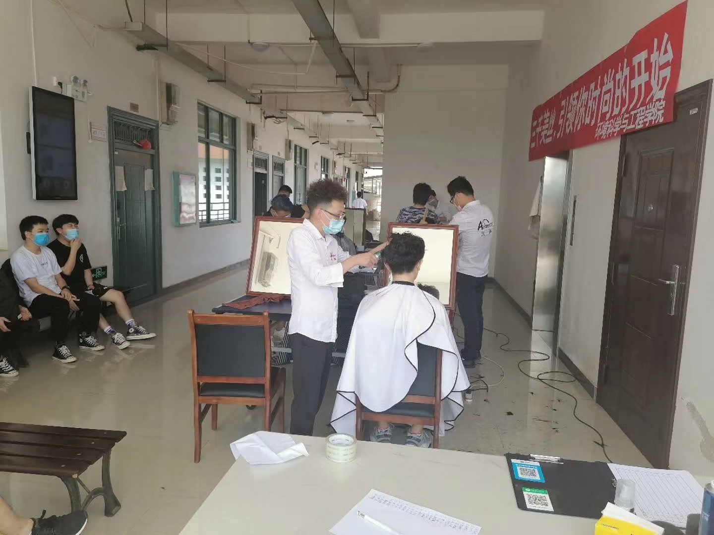在疫情防控时期,学校实行封闭式管理,很多同学为发型而烦恼。为了解决同学们的理发问题,5月28日上午,学院通过与校外的渤美理发店沟通协调。安排多名技艺精湛的托尼老师进校为同学们理发,地点在雁山校区12栋5楼。 理发后的同学们个个精神饱满,理发师的理发技术受到了同学们的一致好评。最后,非常感谢理发师的的辛苦付出,他们从早上9点到晚上7点连续工作了10个小时,同时也非常感谢同学们对寸止挑战 本次活动的支持以及对理发师的信任。