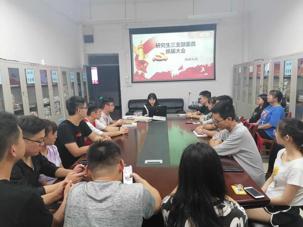 研究生第三党支部于雁山校区12414会议室召开支部委员换届选举大会,支部全体党员参加本次大会。