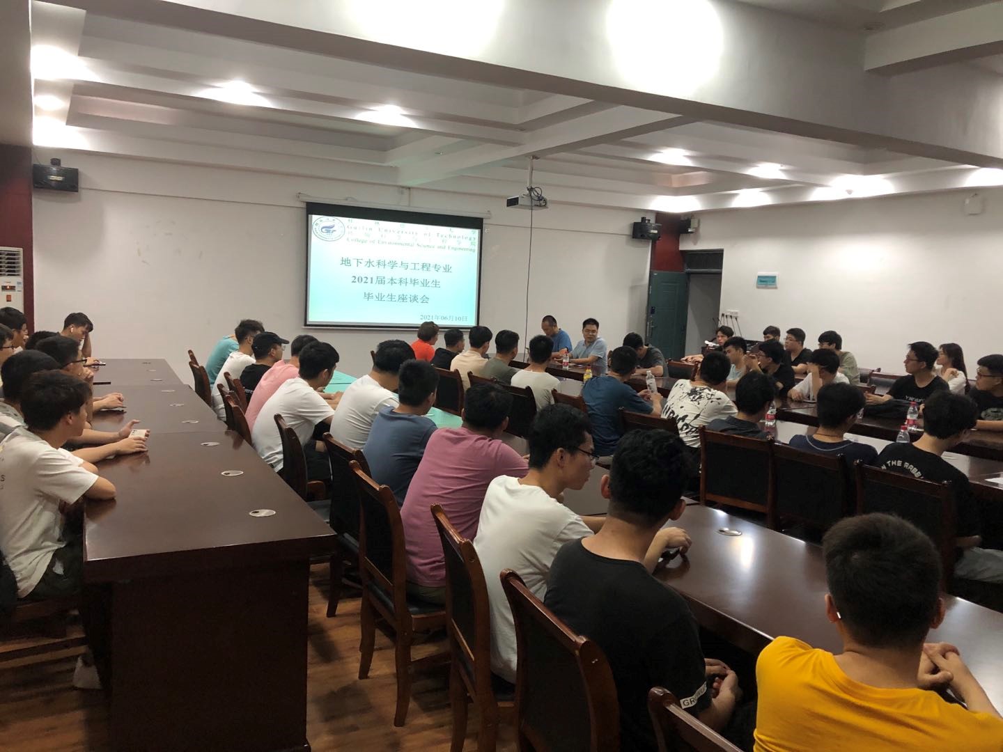 12407会议室召开了2021届毕业生座谈会,会议由地下水教研室主任夏源主持,出席人员有2021届全体毕业生以及教研室蒋亚萍、陈盟、胡荣庭等老师。