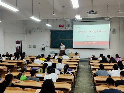 在06408教室开展“文明离校——争做优秀桂工人”主题讲座,讲座由学院党委副书记郝文佳主讲,2017级辅导员巩宇飞老师主持本次讲座。