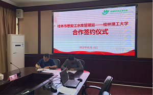 与桂林市思安江水库管理站合作签约仪式于屏风校区圆满完成。桂林市思安江水库管理站站长陆佳荣、副站长粟玲、组织委员孙宽立、工会主席范权锋一行,学院党委副书记郝文佳、副院长黄亮亮、副院长李海翔,地下水科学与工程教研室主任夏源、程亚平副教授,水文与水资源工程教研室方荣杰研究员参与了签约仪式,签约仪式由李海翔副院长主持。