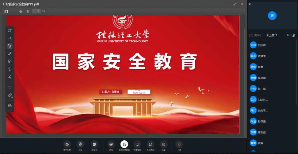 各年级结合《大学生成长成才教育》课程,以线上线下相结合的形式,开展了以树牢总体国家安全观, 感悟新时代国家安全成就,为迎接党的二十大胜利召开营造良好氛围”为主题的国家安全宣传教育活动。